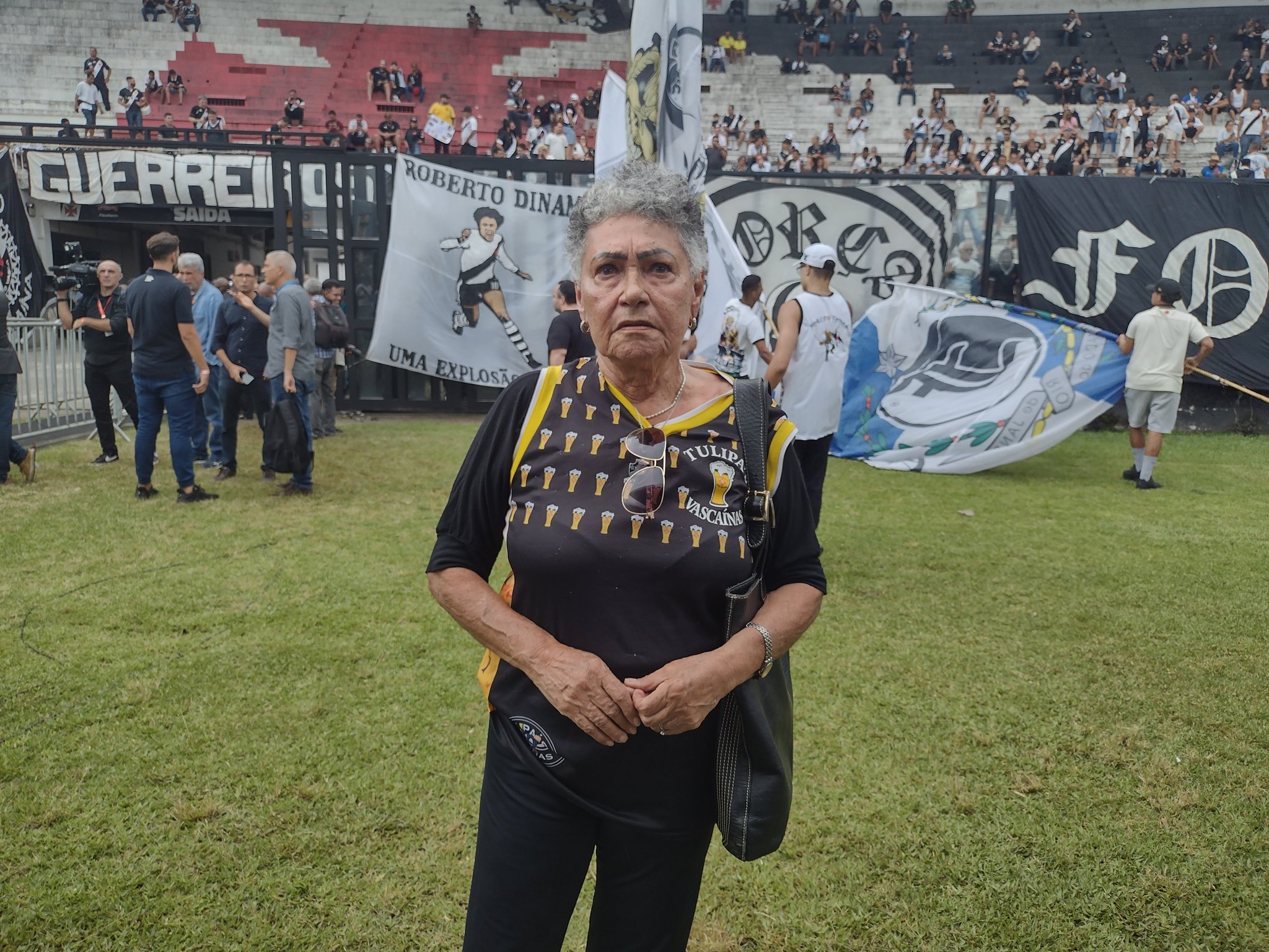 Dona Penha, torcedora-símbolo do Vasco e presidente da Tulipa's Vascaínas no adeus ao eterno ídolo.