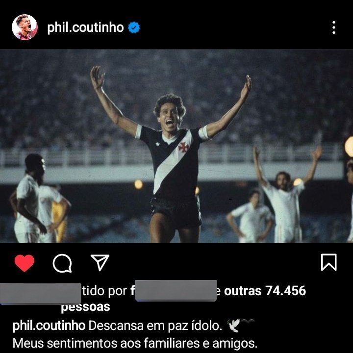 Douglas Luiz e Philippe Coutinho, que tiveram jogo e concentração no dia de ontem, publicaram hoje suas homenagens a Roberto Dinamite.