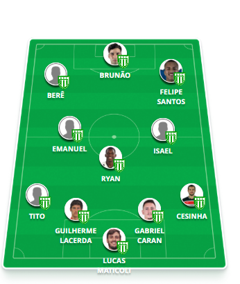 Provável time: Lucas; Cesinha, Gabriel Caran, Guilherme Lacerda e Tito; Ryan Couto e Emanuel; Fellipinho, Isael e Berê; Brunão.