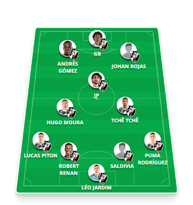 Provável time: Léo Jardim, Puma Rodríguez, Saldivia, Robert Renan, Lucas Piton; Hugo Moura, Tchê Tchê e JP; Andrés Gómez (David), GB e Rojas.