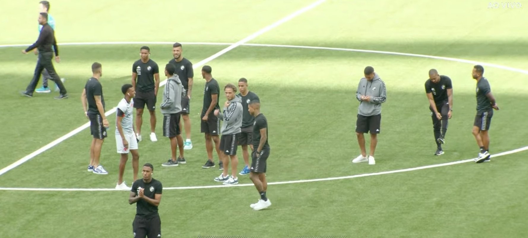 Os jogadores do Vasco foram ao campo do Nilton Santos para reconhecimento do gramado. Será a primeira vez que o Gigante da Colina jogará nesse estádio após a troca do tipo de solo, que agora é sintético. A partida começa às 16h.