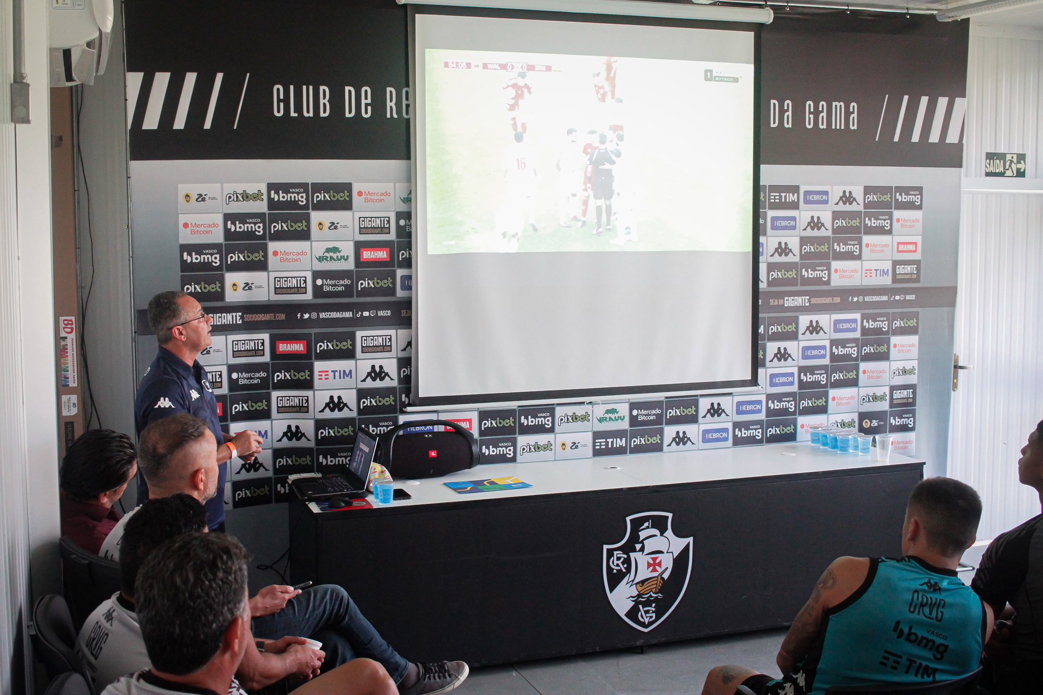 O elenco cruzmaltino assistiu uma palestra sobre a arbitragem com instrutores da CBF antes do treino desta quarta.