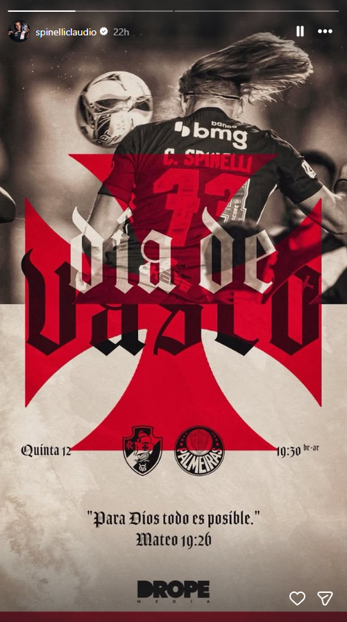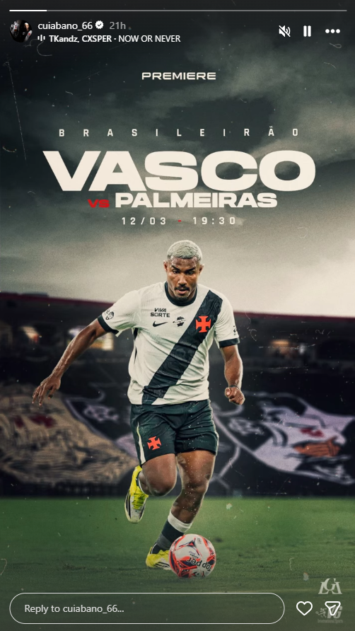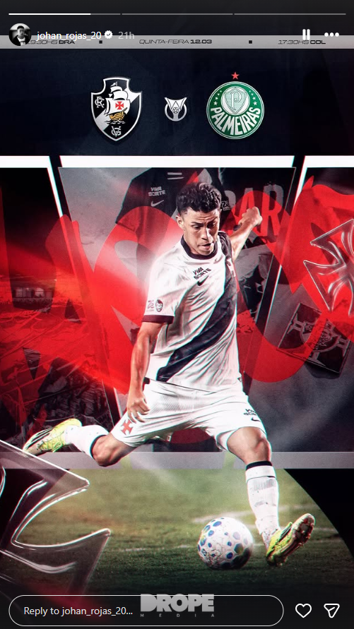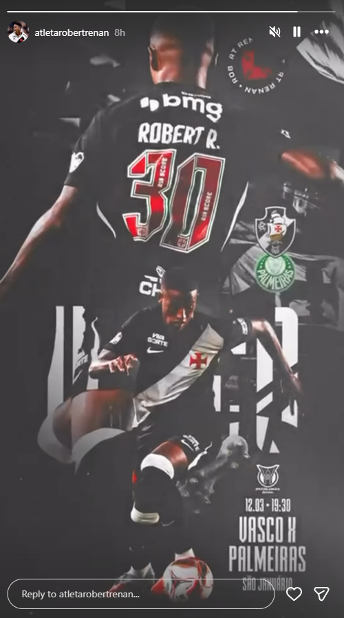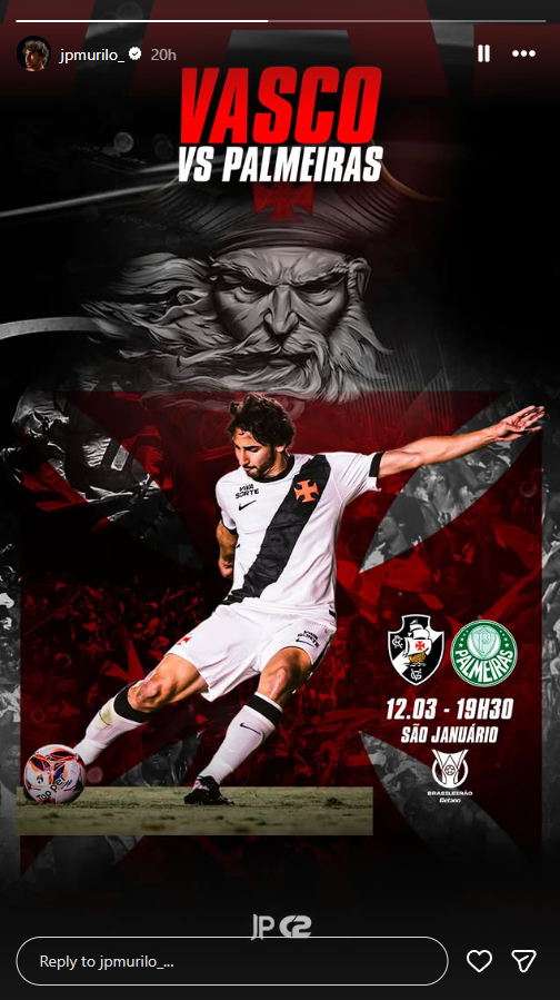 Jogadores do Vasco publicam imagens destacando o duelo contra o Palmeiras, nesta quinta (12), às 19h30, em São Januário.