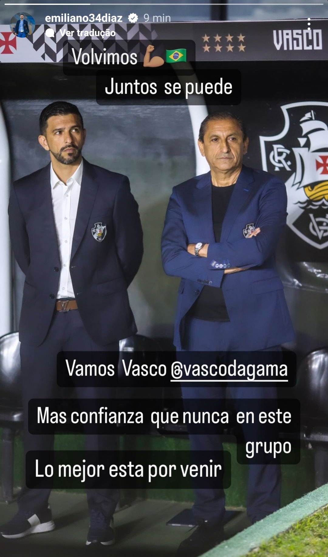 Emiliano Díaz posta foto de sua estreia pelo Vasco: 'O melhor está por vir'