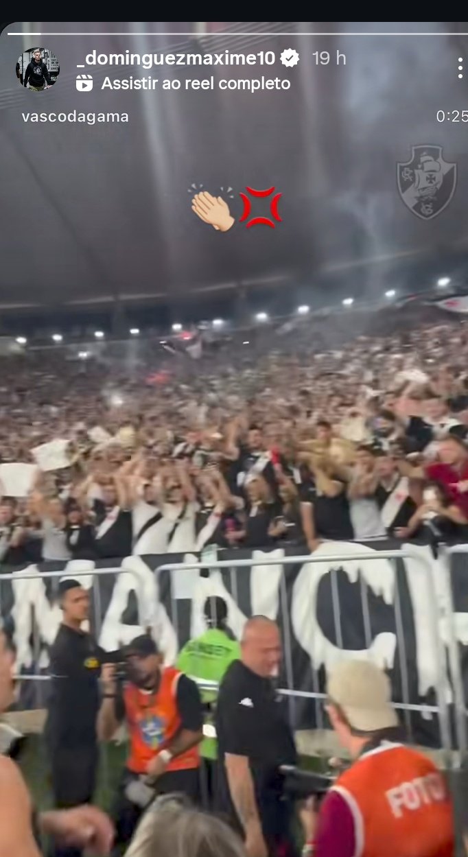 Emprestado pelo Vasco, Maxime Dominguez republica festa da torcida na rede social.