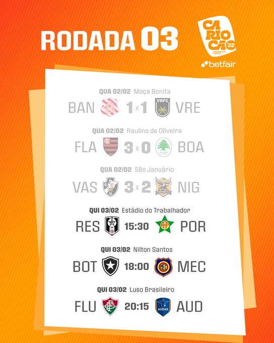 Encerramento da 3ª rodada do Cariocão acontece nesta quinta-feira (3)