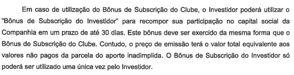 Mas, mesmo com o Vasco acionando essa cláusula, a 777 ainda terá um prazo de 30 dias (05/11/2023) para pagar o aporte, utilizar o bônus de subscrição do investidor e recuperar as ações. Esse bônus de subscrição, no entanto, só pode ser utilizado uma única vez pela empresa. Assim, não poderia haver mais atrasos nos próximos anos.