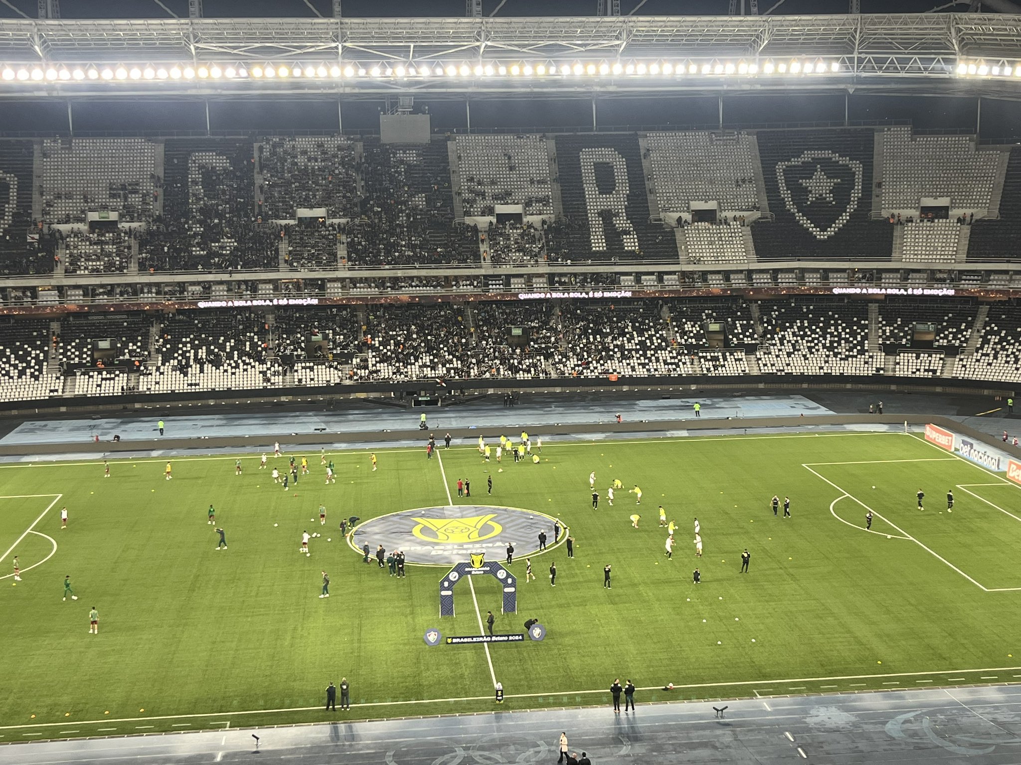 Equipes aquecem no gramado do Engenhão antes da bola rolar