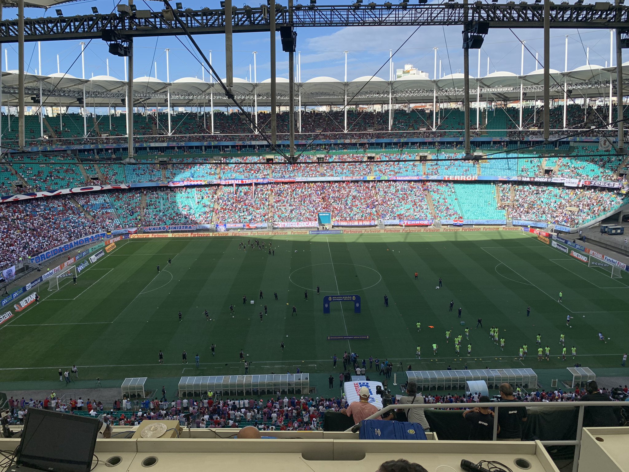 Equipes finalizam aquecimento no gramado da Arena Fonte Nova