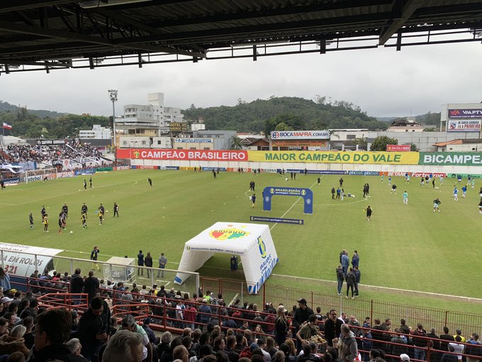 As duas equipes estão em campo para o aquecimento.