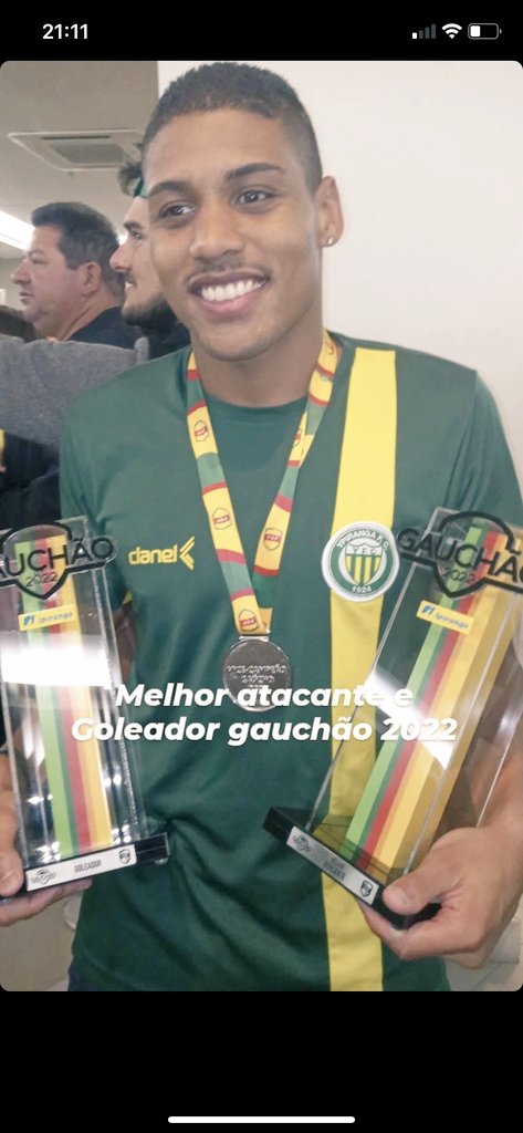 Erick posa com prêmios individuais melhor atacante e goleador do Gauchão