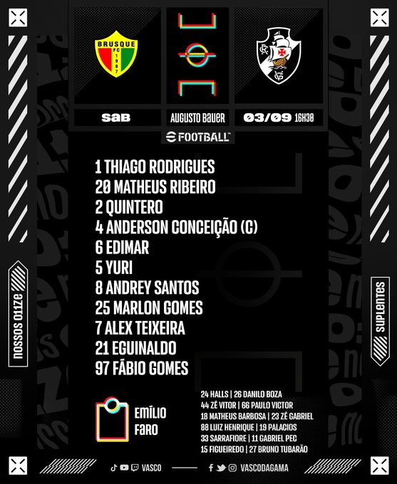 Vasco definido para a partida.