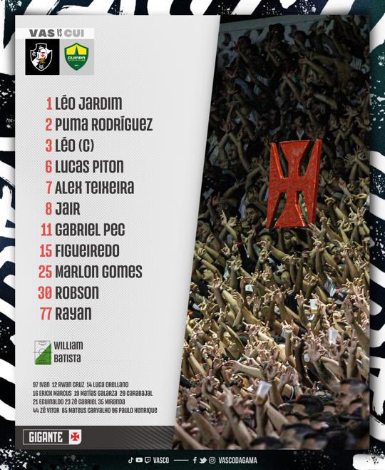 Gigante da Colina escalado para o jogo diante do Cuiabá! 📋