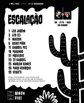 💢📋 A escalação do 𝑽𝑨𝑺𝑪𝑶 𝑫𝑨 𝑮𝑨𝑴𝑨 no formato estático em disposição numérica!