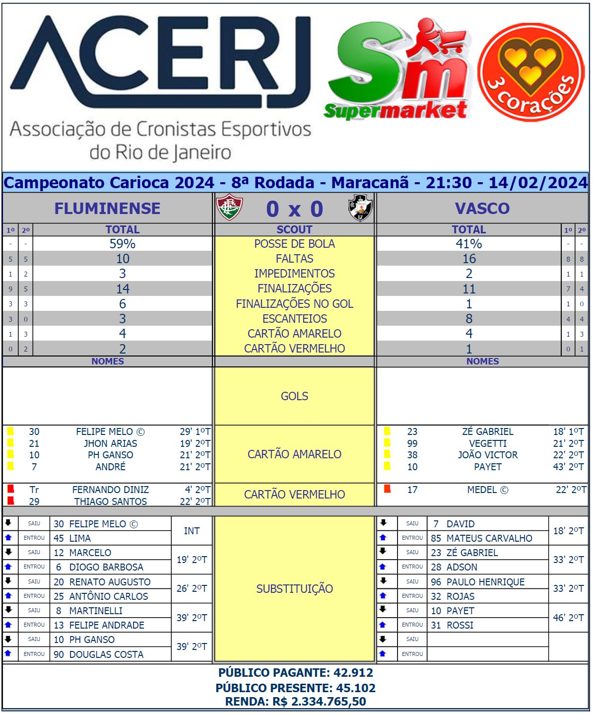 Scout Final de Fluminense e Vasco pela 8ª Rodada do Campeonato Carioca 2024 no Maracanã