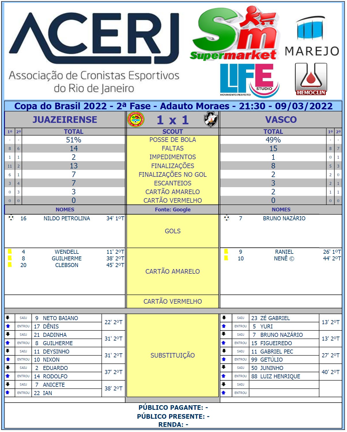 Scout Final de Juazeirense e Vasco pela 2ª Fase da Copa do Brasil 2022 no Estádio Adauto Moraes