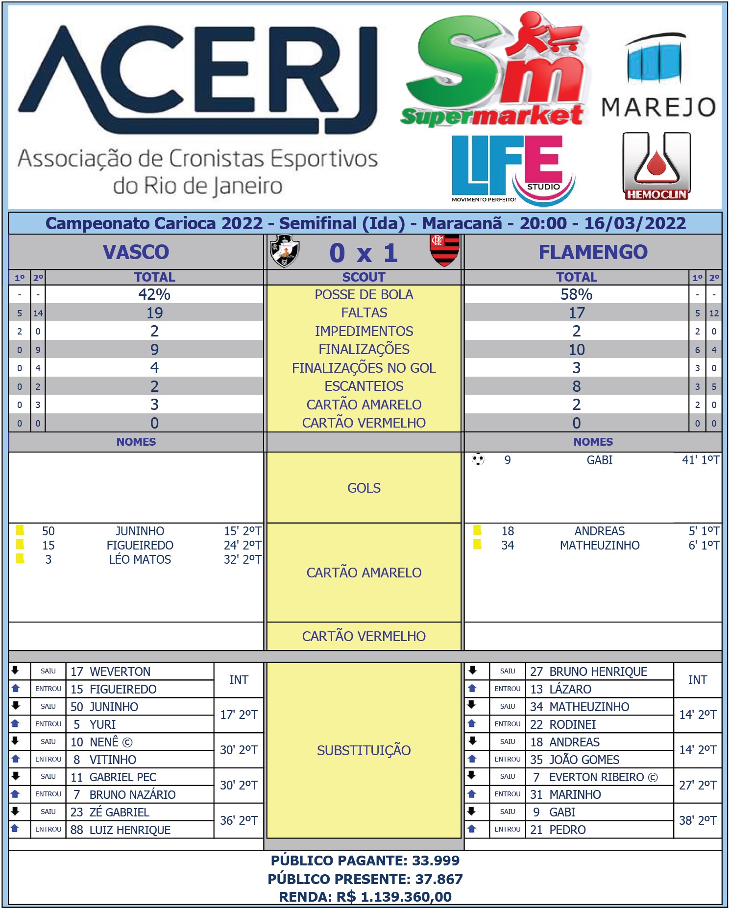 Scout final de Vasco e Flamengo pela Semifinal do Campeonato Carioca 2022 no Maracanã