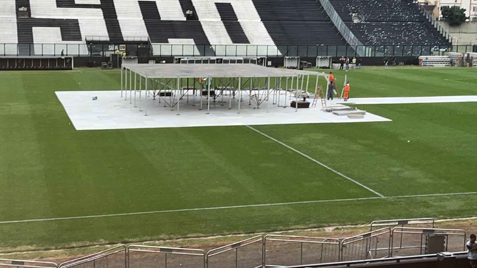 Estrutura para apresentação de Coutinho segue sendo montada em SJ