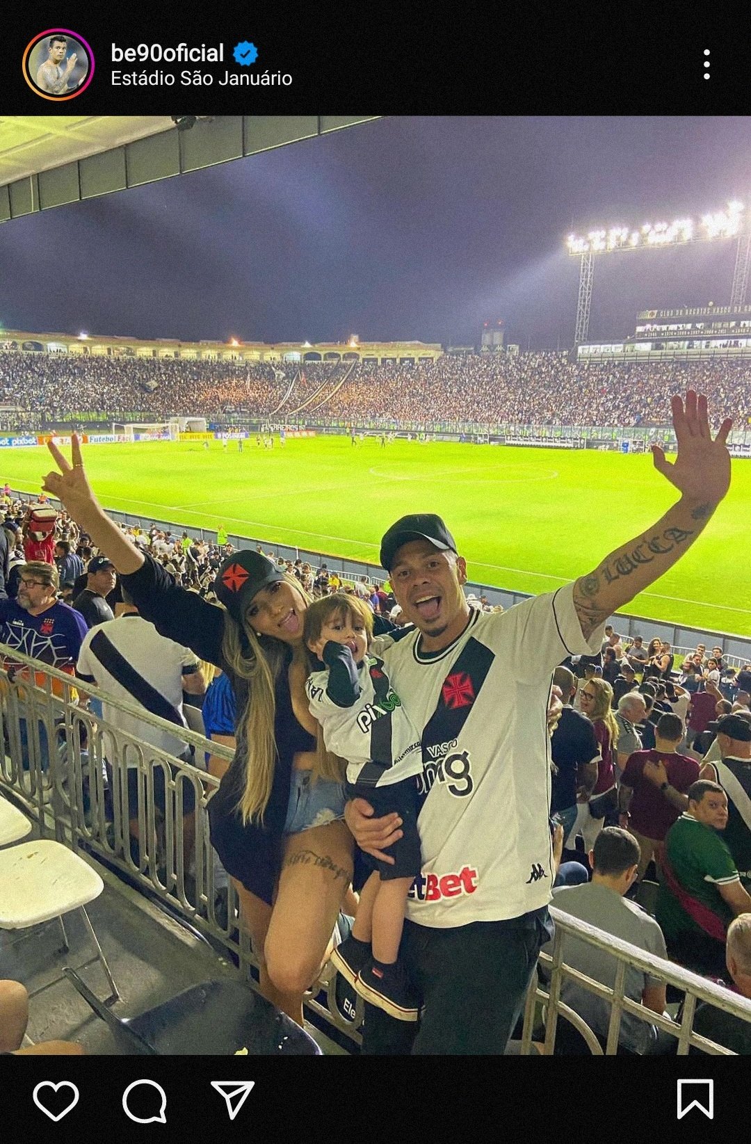 Bernardo, campeão da Copa do Brasil, em São Januário hoje com sua mulher e seu filho.