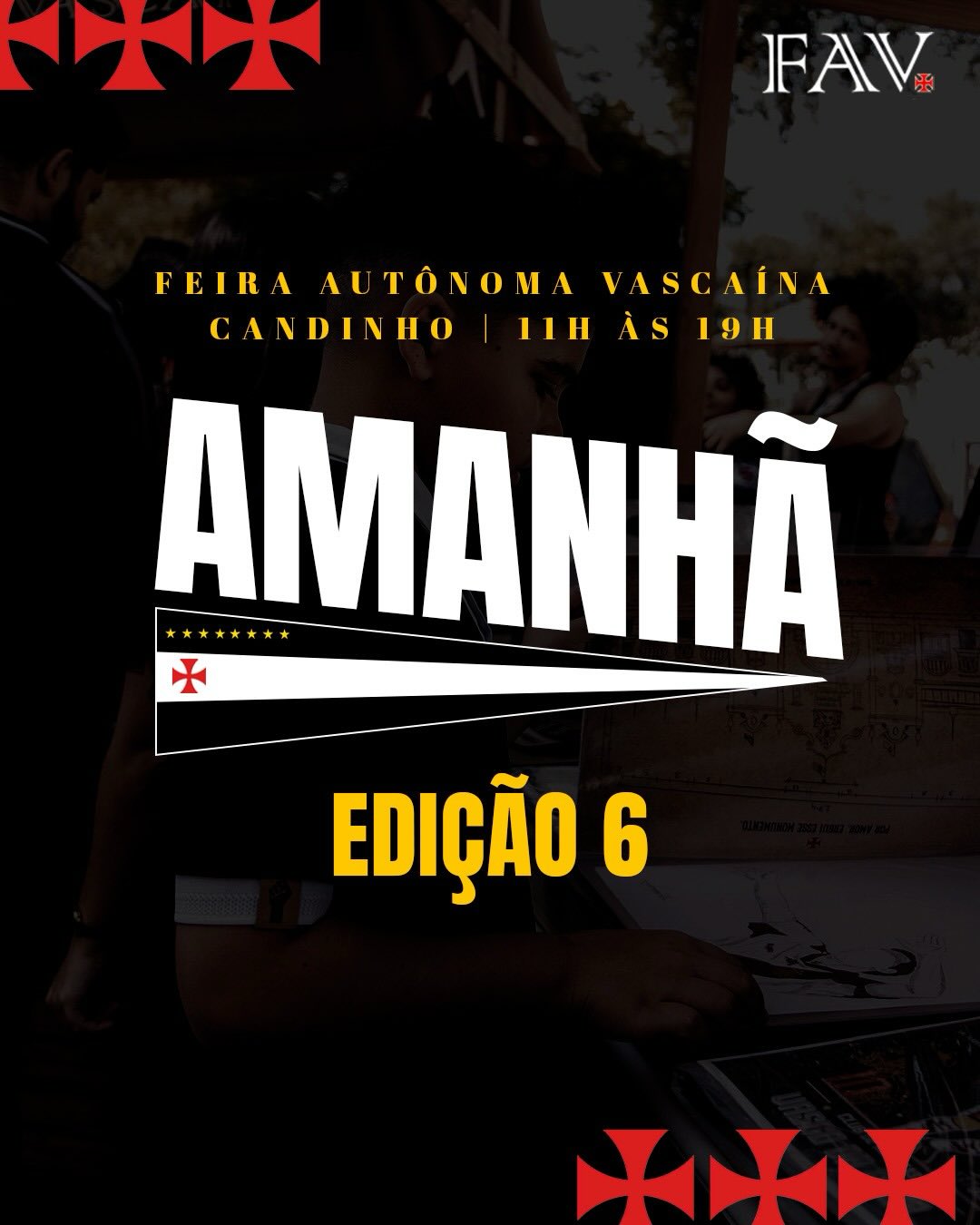 É AMANHÃ! Espalha pra geral que amanhã vai rolar nossa Edição 6 da FAV com vários expositores vascaínos, cerveja, pagode, rap e muito mais!