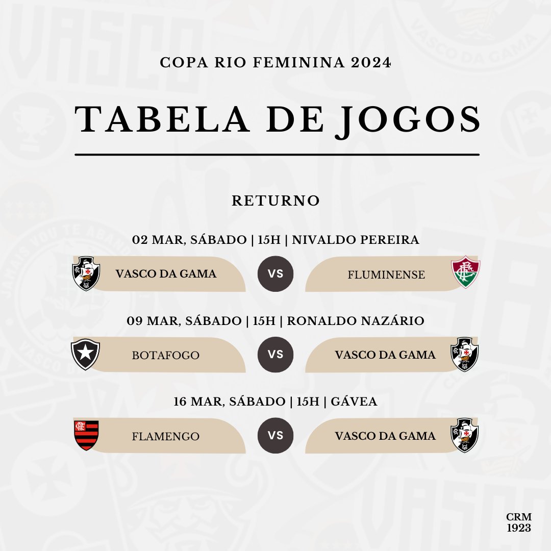 O Vasco estreia no dia 10 contra o Botafogo. ⬇️