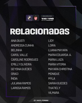 Confira as relacionadas para a partida de hoje contra o Vila Nova, pelo jogo de volta da primeira fase do Campeonato Brasileiro A3. Pra cima, meninas! 💢🚀