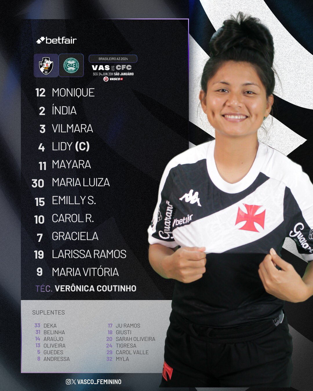 A bola rola às 20h para Vasco e Coritiba, em São Januário, com transmissão da VascoTV. VAMOS! ✅💢 #MeninasDaColina