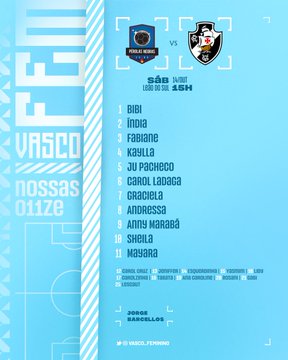 Feminino: Escalação do Vasco para enfrentar o Pérolas Negras