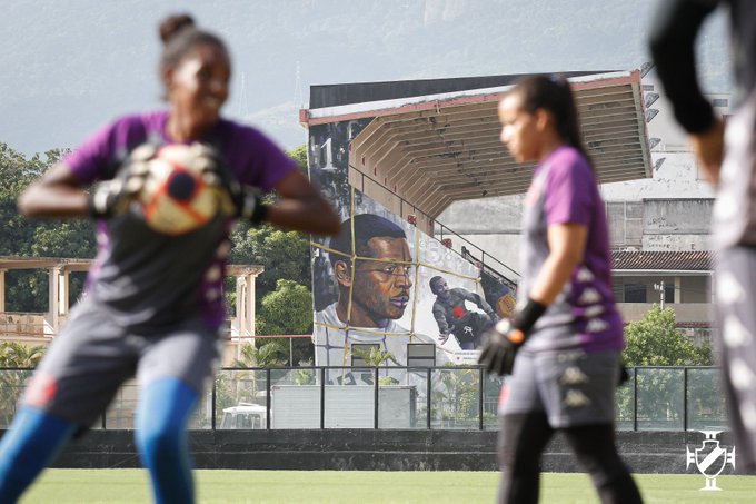 Feminino: Goleiras treinam em São Januário com painel de Barbosa ao fundo