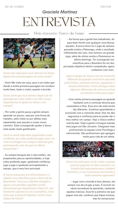 Em entrevista para Cruzmaltinas 1923, a meia-atacante do Vasco Feminino, Graci Martinez, conta como tem sido sua volta ao Gigante, a retomada de confiança e a presença de torcida nos jogos em São Januário.