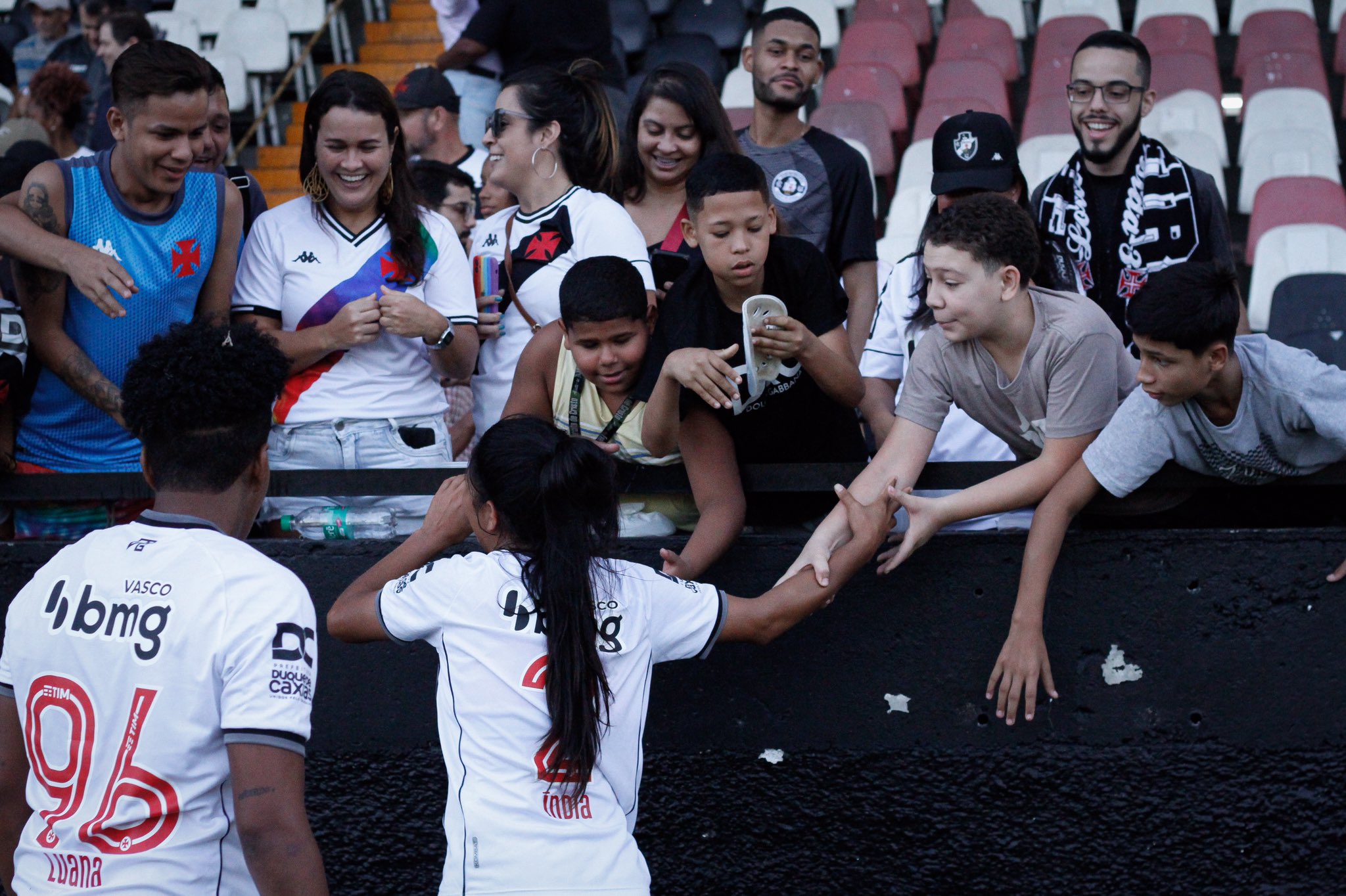 Lateral Índia do Vasco da Gama, sendo tietada pelas crianças pós partida em São Januário.
