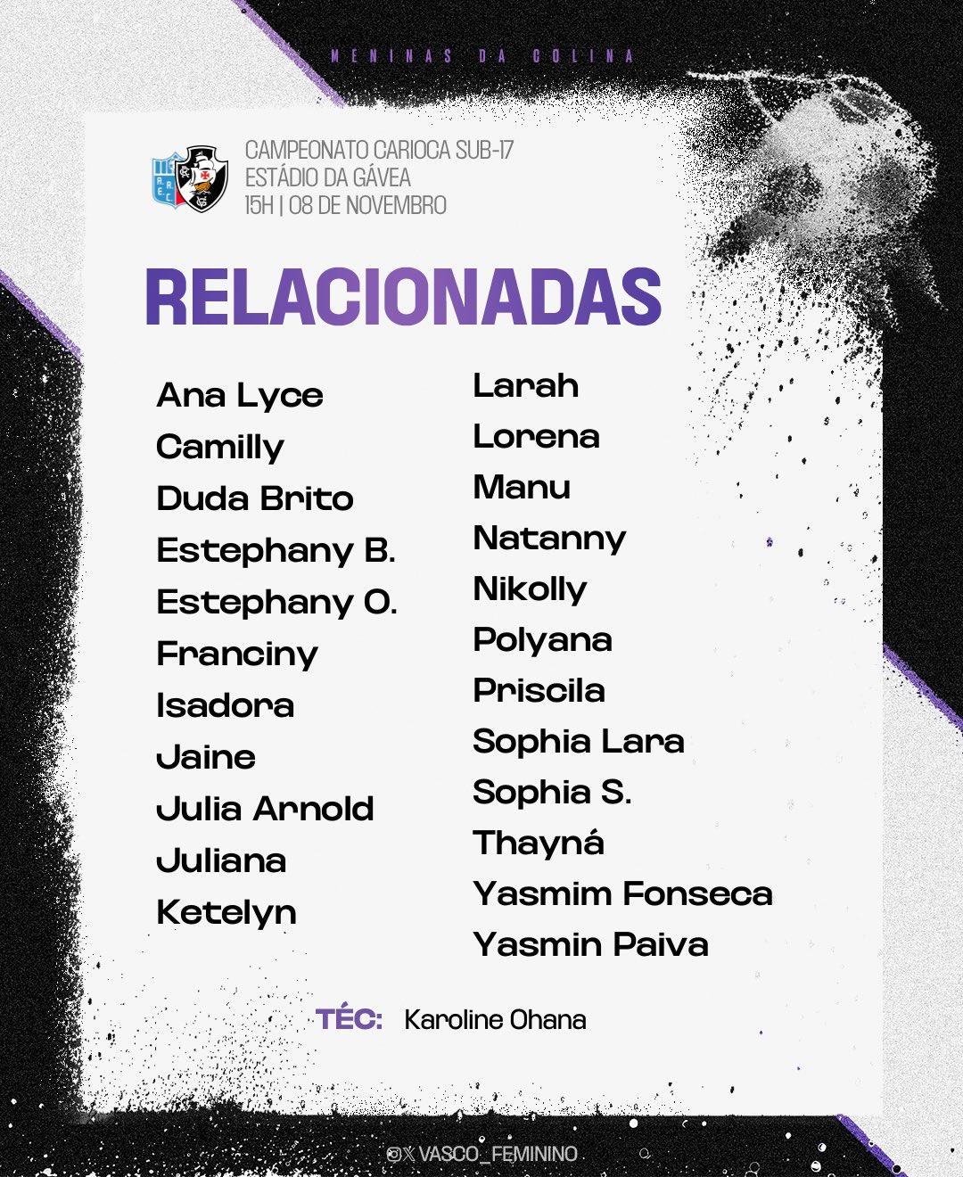 Feminino Sub-17: Relacionadas do Vasco para enfrentar o Angra dos Reis