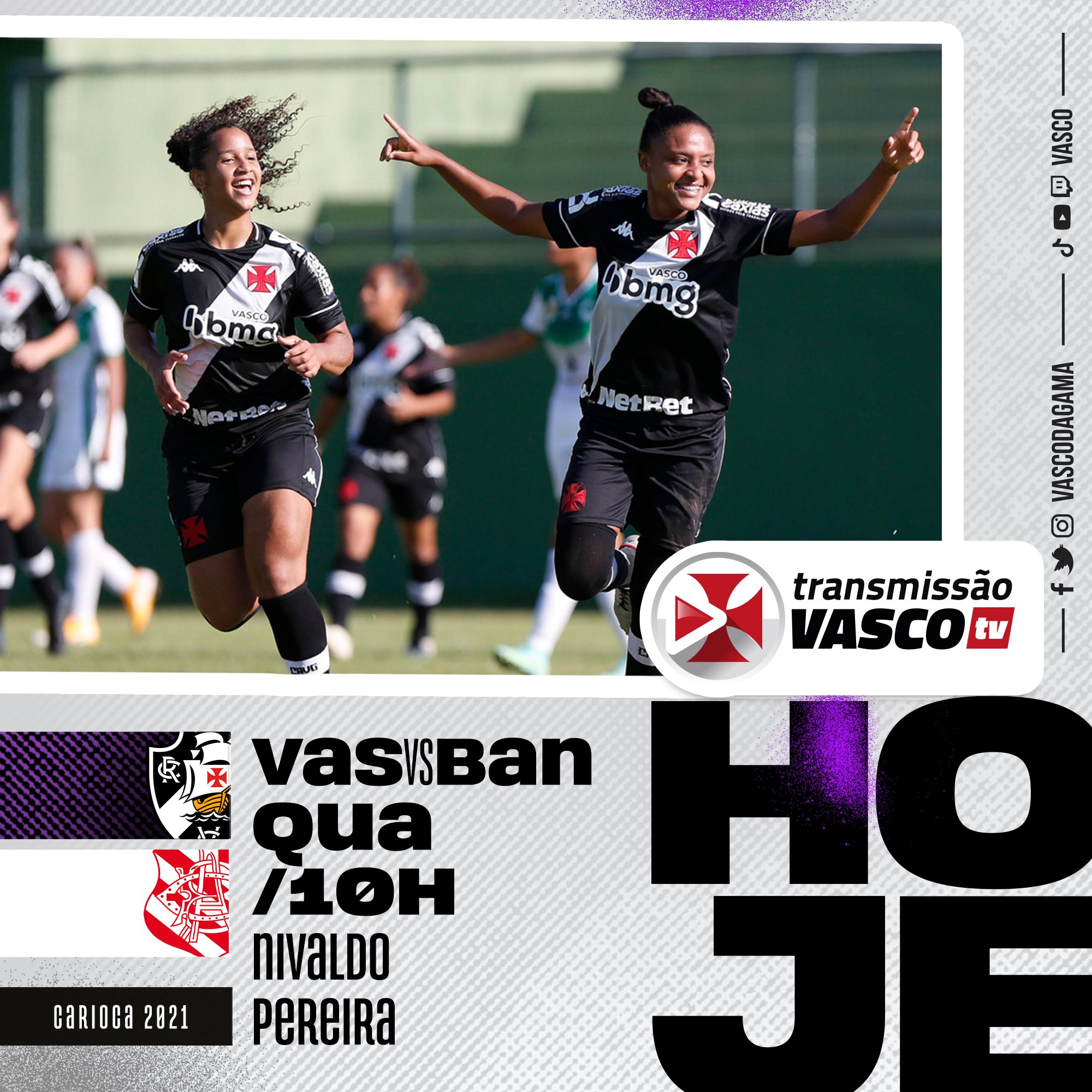 Hoje tem #MeninasdaColina em campo! O Vasco encara o Bangu pela 5ª rodada da Taça Guanabara, às 10h, no Estádio Nivaldo Pereira. A partida será transmitida pela Vasco TV.