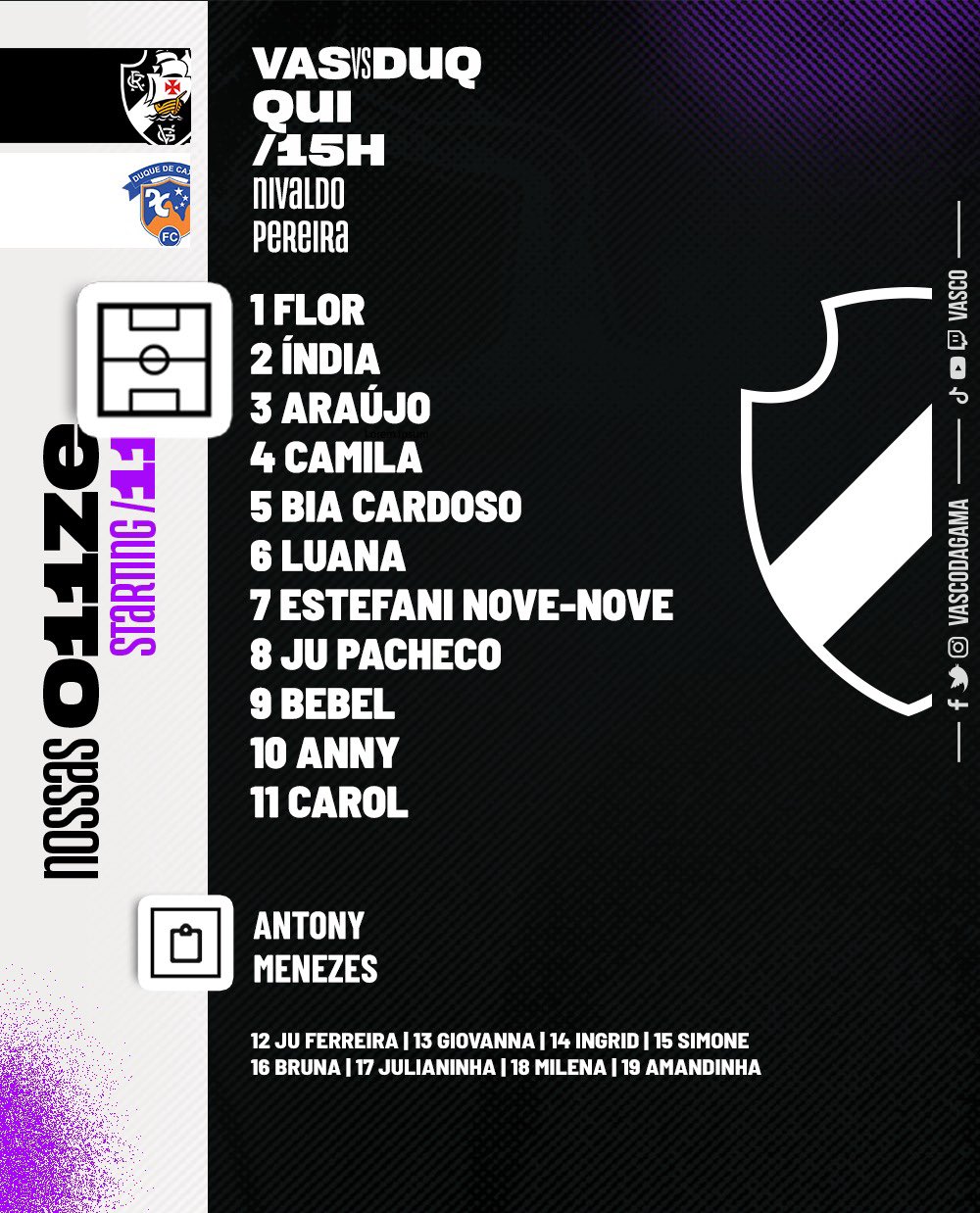 Meninas da Colina escaladas para o confronto diante do Duque de Caxias. Acompanhe a partida pela VascoTV!