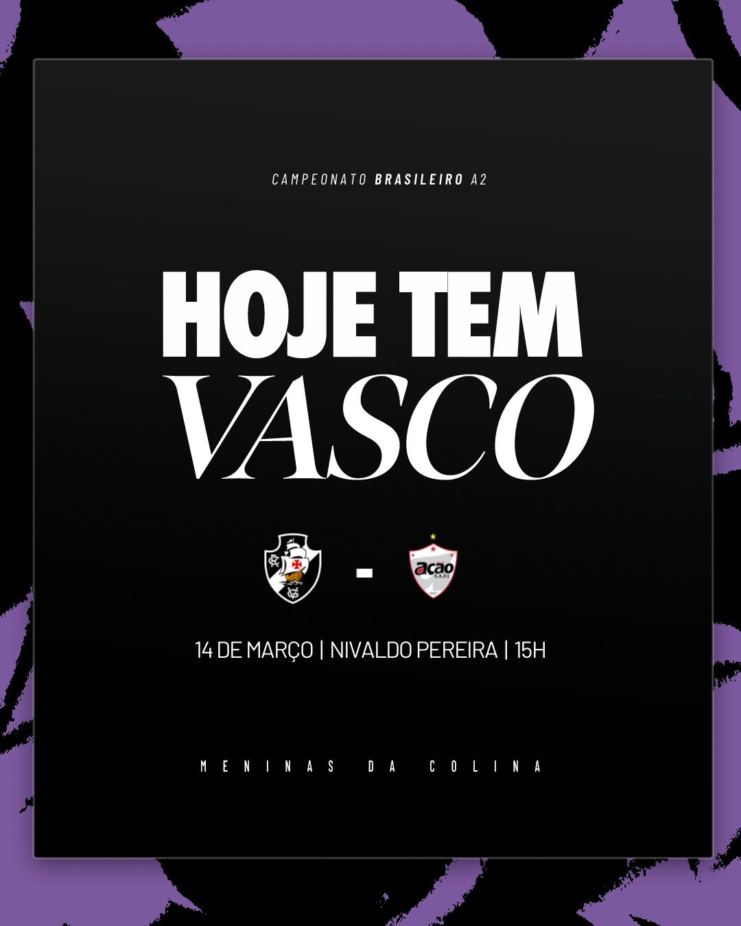 O Vasco estreia no Brasileirão Feminino A2 neste sábado, às 15h, contra o Ação-MT, no Estádio Nivaldo Pereira. A partida marca o início da campanha das Meninas da Colina na competição nacional, que tem como principal objetivo o acesso à primeira divisão.