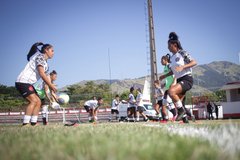 Aquecimento finalizado para as #MeninasDaColina. A bola rola às 15h para Vasco e Vila Nova, no Estádio Moça Bonita. VAMOS, VASCO! 💢⚽️