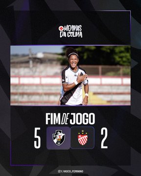 As #MeninasDaColina vencem o Vila Nova por 5 a 2, pelo jogo de volta do Brasileiro A3, no Estádio Moça Bonita. Os gols foram marcados por Maria Vitória (3), Graci e Luana. VAMOS, VASCO! 💪