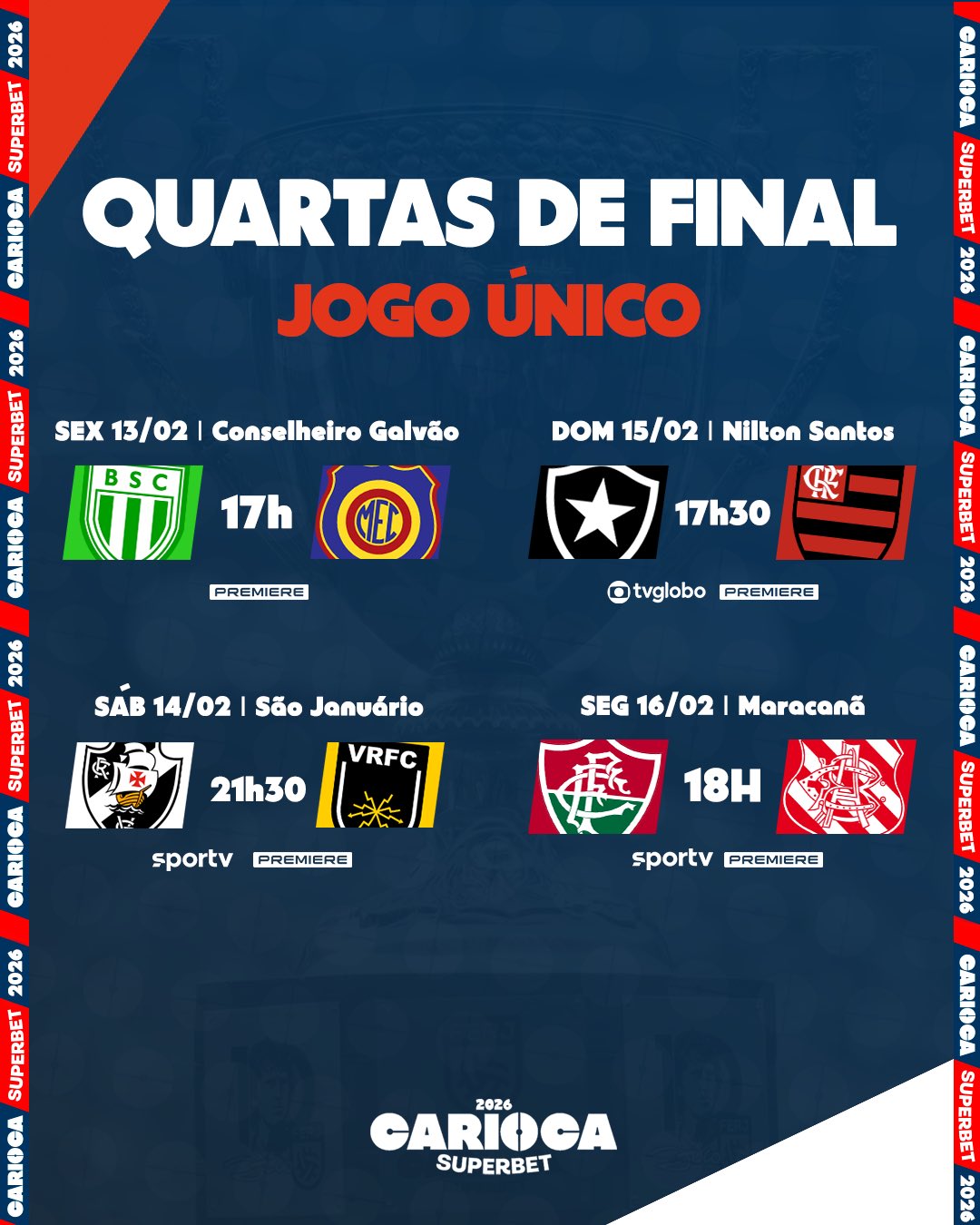 FERJ divulga datas e horários das quartas do Cariocão