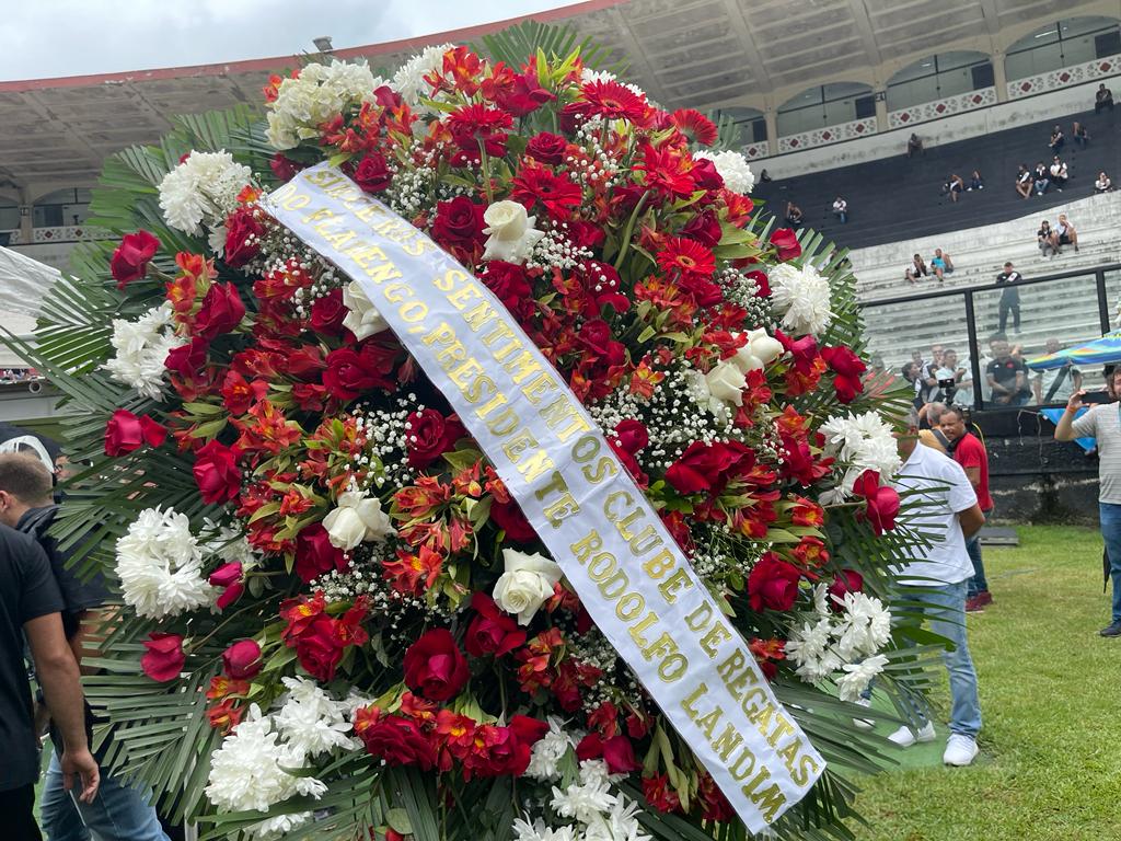 Coroa de flores enviada pelo Flamengo em nome do presidente Rodolfo Landim. Registro feito pelo @wellingcampos no velório de Roberto Dinamite.