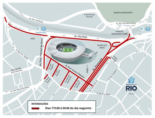 A CET-Rio montou uma operação especial de trânsito para o clássico entre Fluminense e Vasco, neste domingo (14/12), às 20h30, no Maracanã, pela segunda partida da semifinal da Copa do Brasil. As interdições ao tráfego de veículos na região começam a partir das 17h30 e vão até 0h30 de segunda-feira (15/12). Além dos locais regulamentados com proibição de estacionamento, outras vias também estarão restritas a partir das 10h.