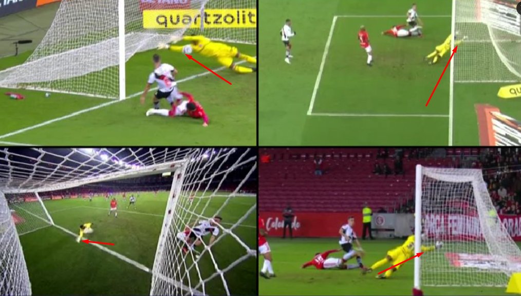 Todas as 4 cameras mostram o braço do goleiro dentro do gol... oque me chama a atenção é não ter a camera 4 pelo outro lado, onde iria mostrar se entrou ou não.