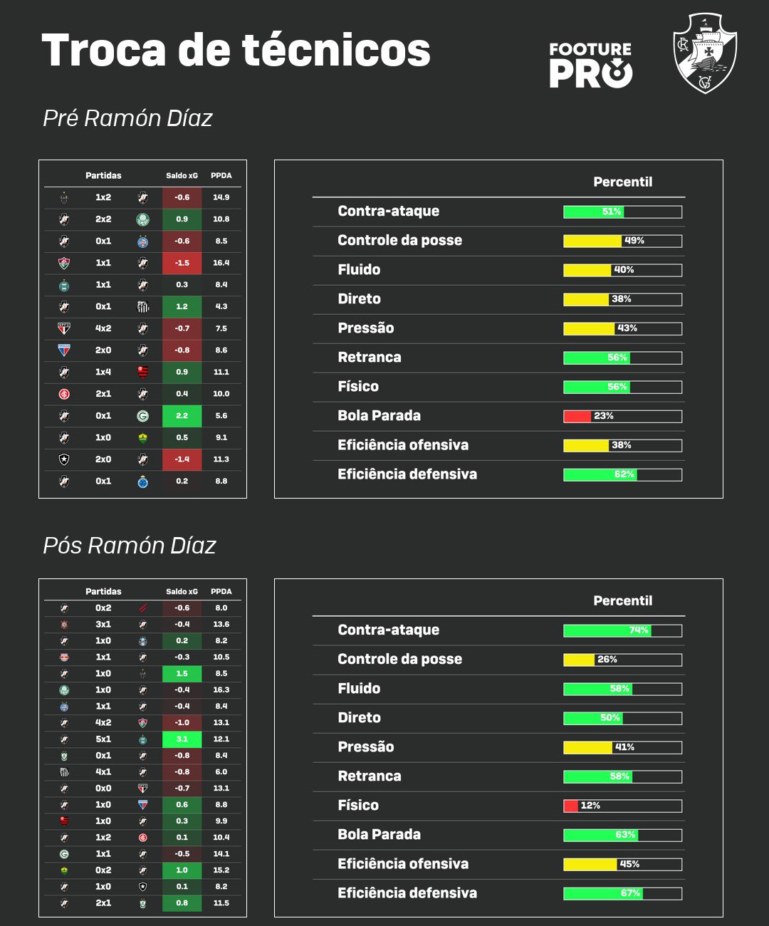 💢 O @FooturePro fez um comparativo do Vasco 𝐏𝐫𝐞́ e 𝐏𝐨́𝐬 a chegada de Ramón Diaz.