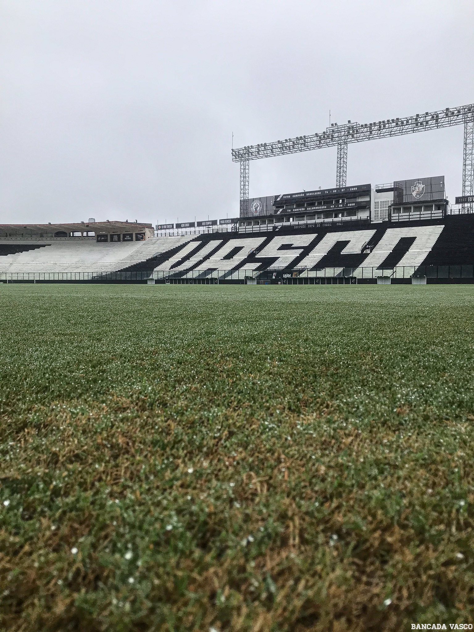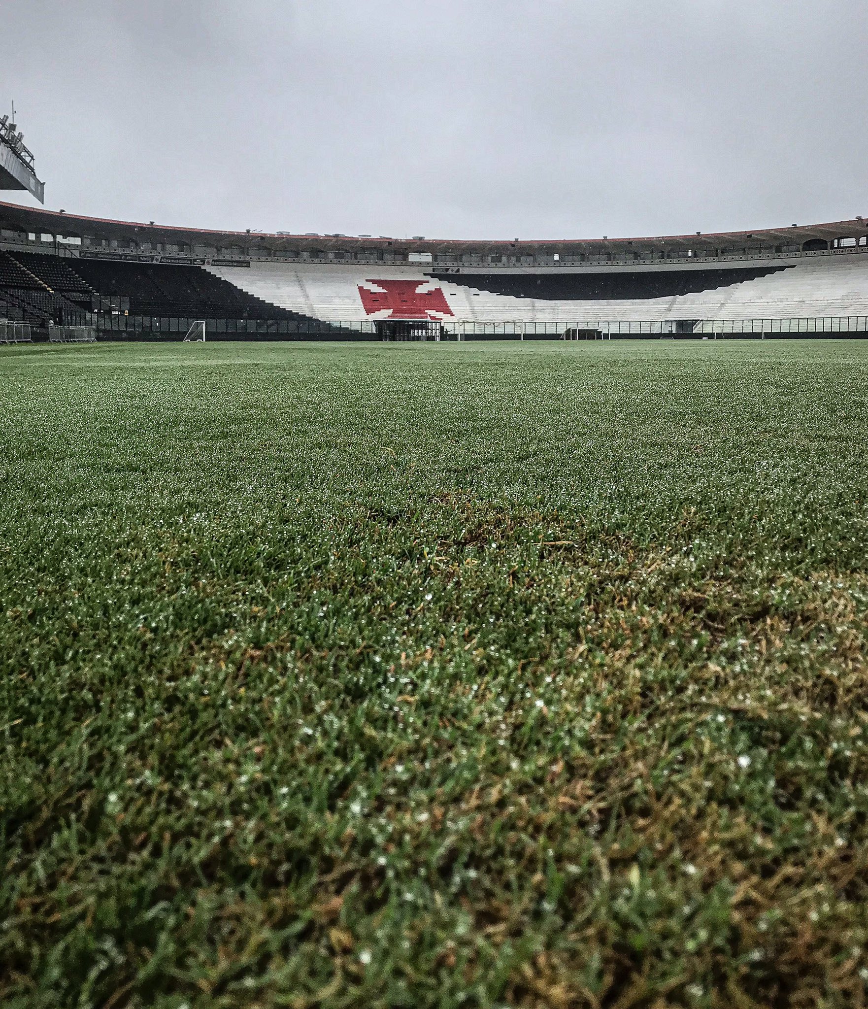 Foto mostra a situação do gramado de São Januário na manhã deste sábado