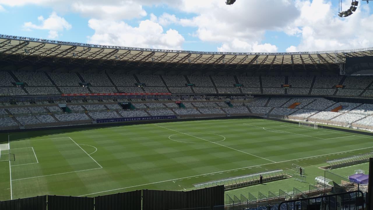 Foto mostra as condições do gramado do Mineirão
