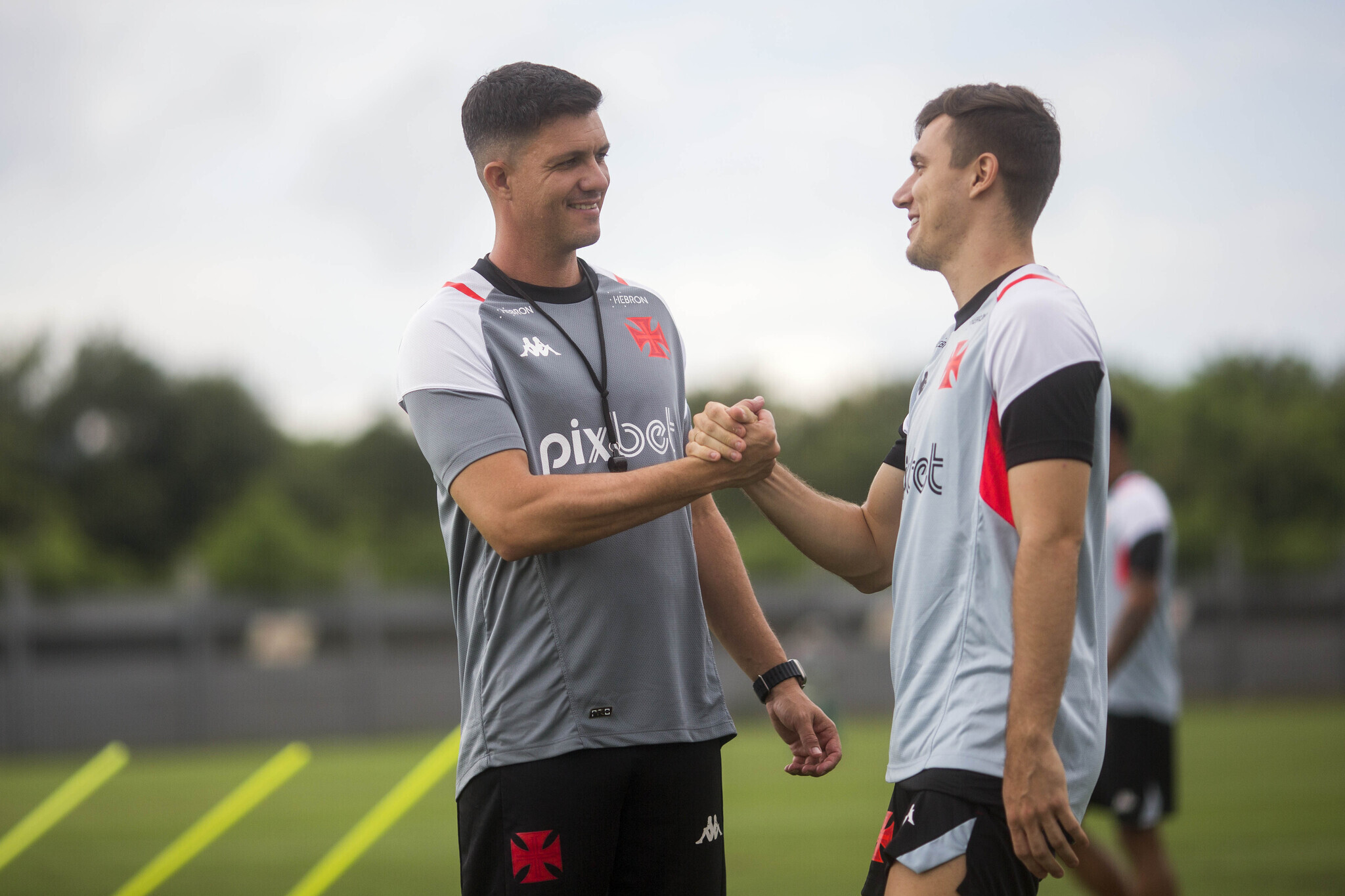 Foto mostra Barbieri ao lado de Lucas Piton durante o treino