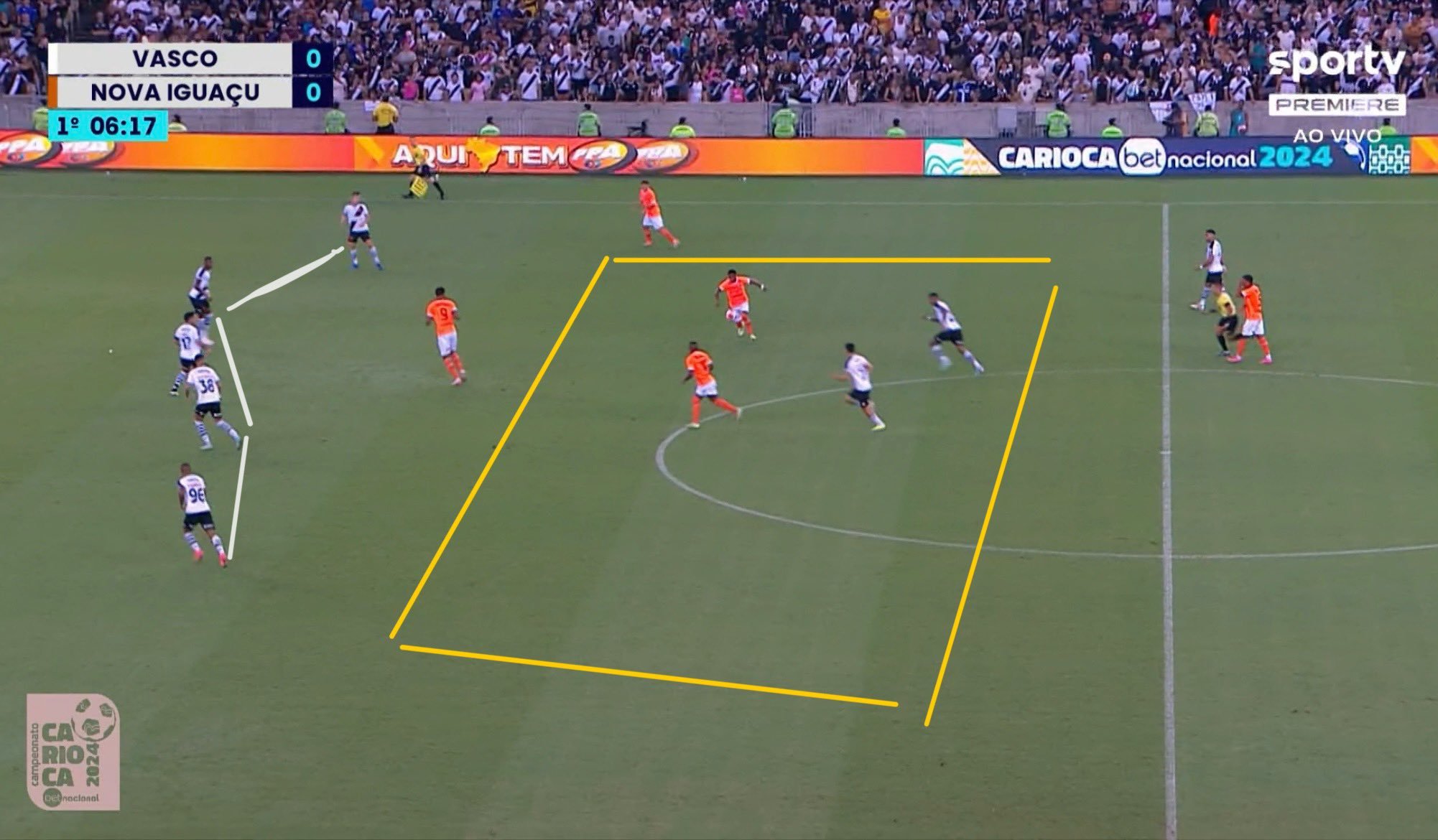 Foto mostra espaço na parte defensiva do Vasco contra o Nova Iguaçu