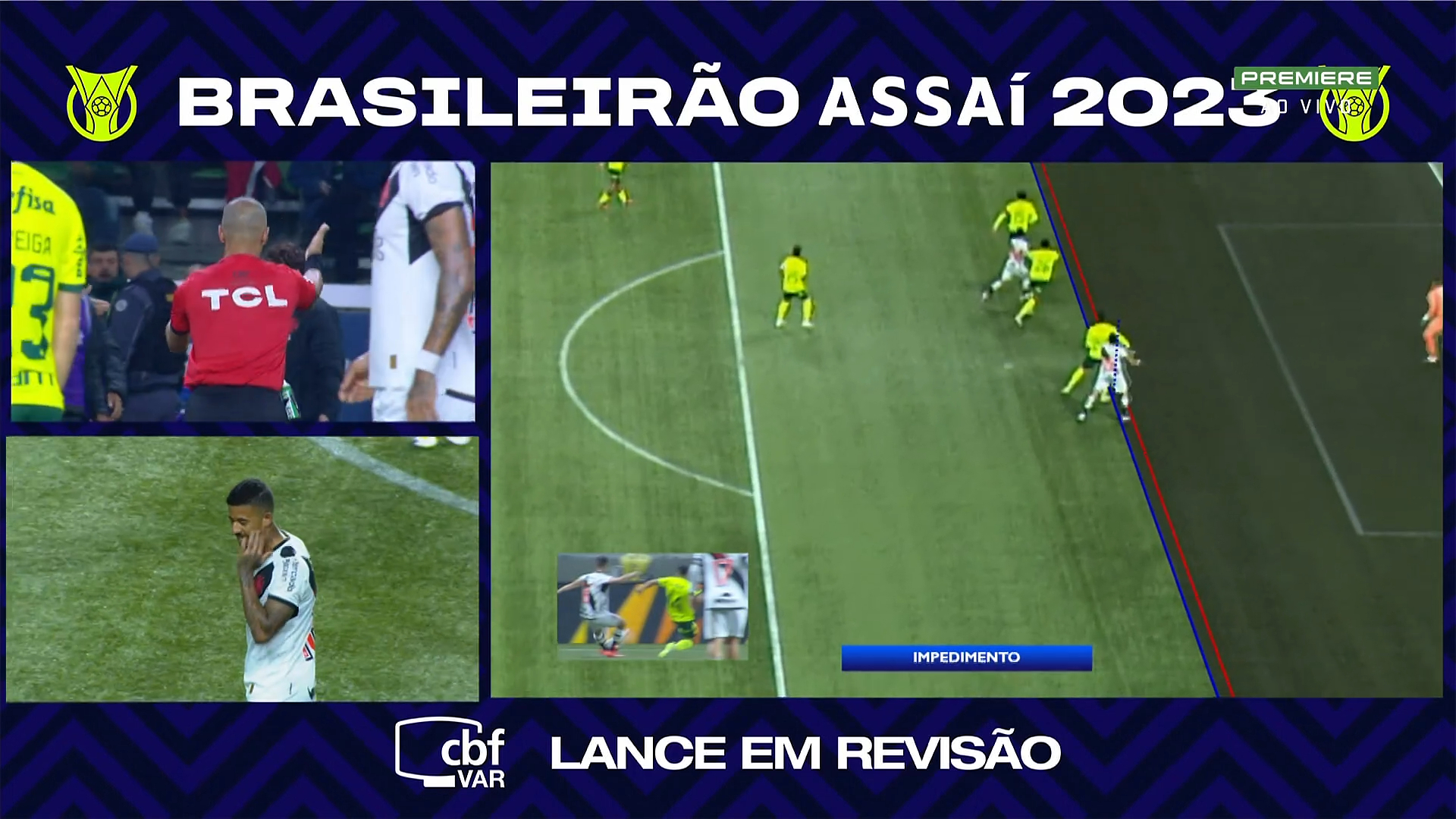 Foto mostra lance do gol invalidado pelo VAR contra o Palmeiras