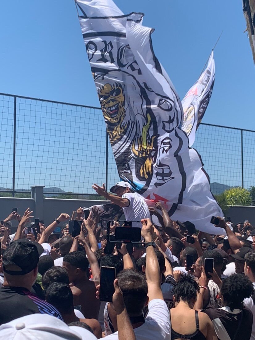 Foto mostra Nenê sendo levantado por torcedores no CT Moacyr Barbosa