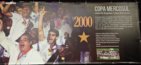 Um dos painéis encontrados na exposição faz referência a conquista da Copa Mercosul, no ano de 2000.