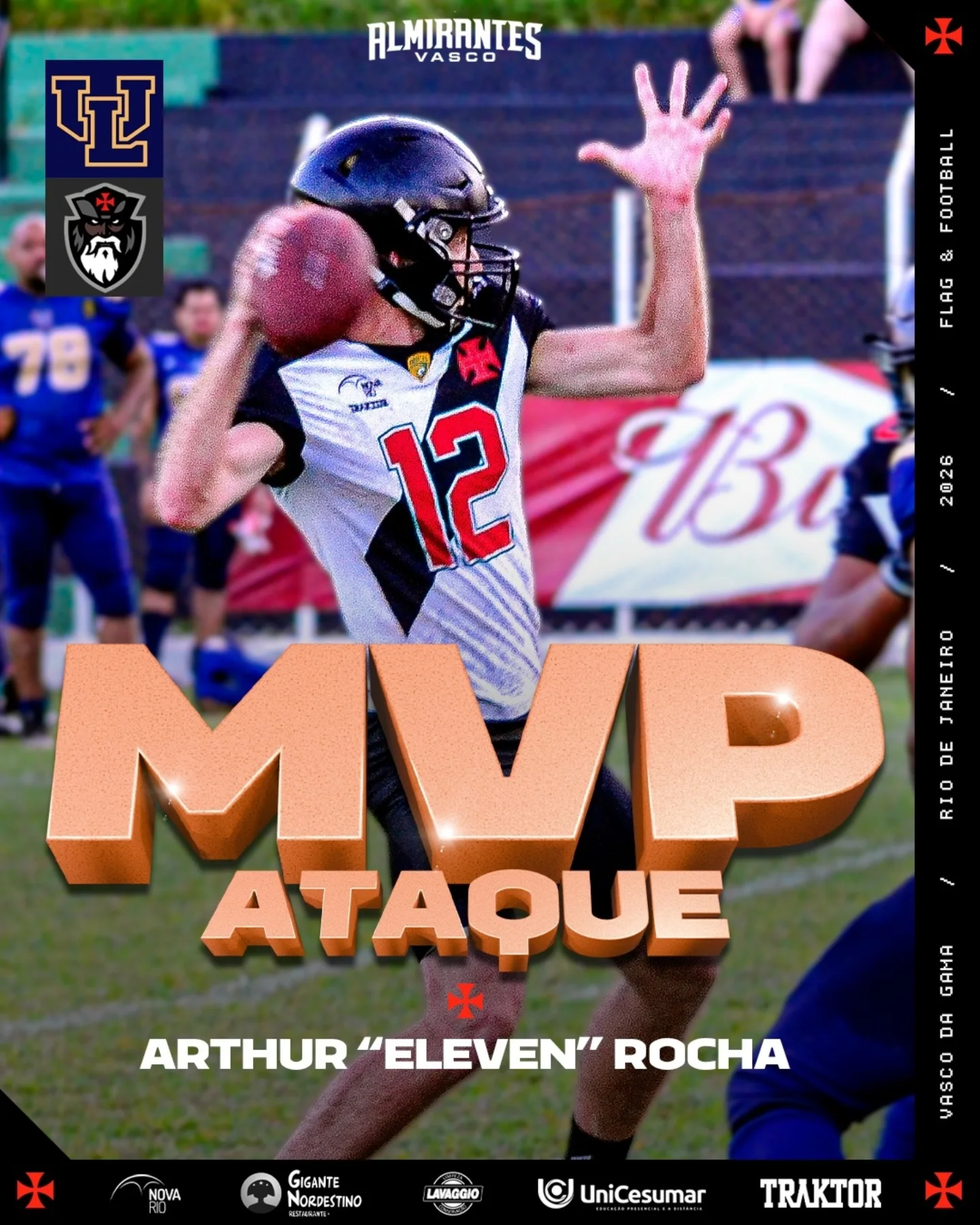Futebol Americano: Vasco teve os MVPs no confronto contra o Uberlândia